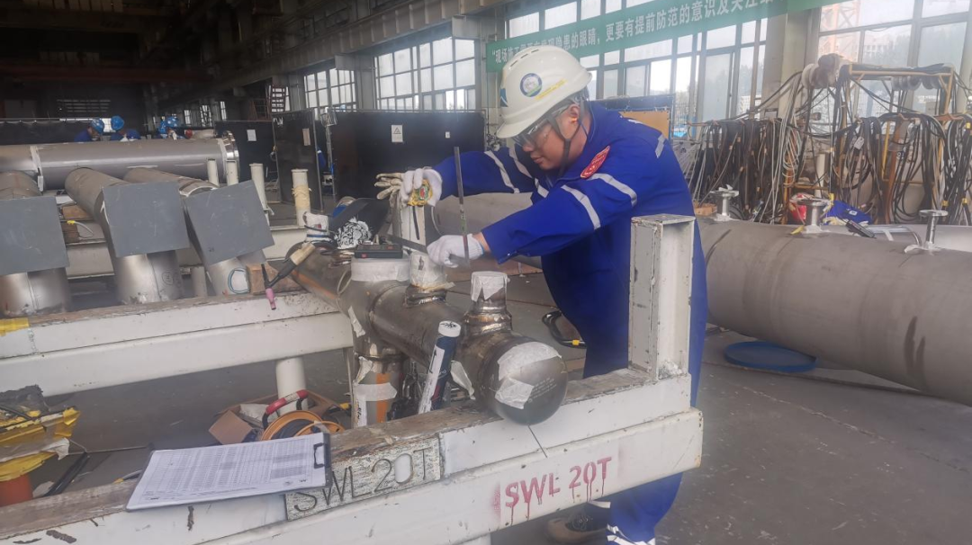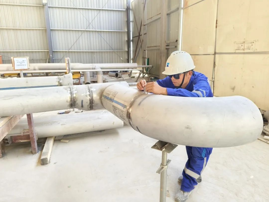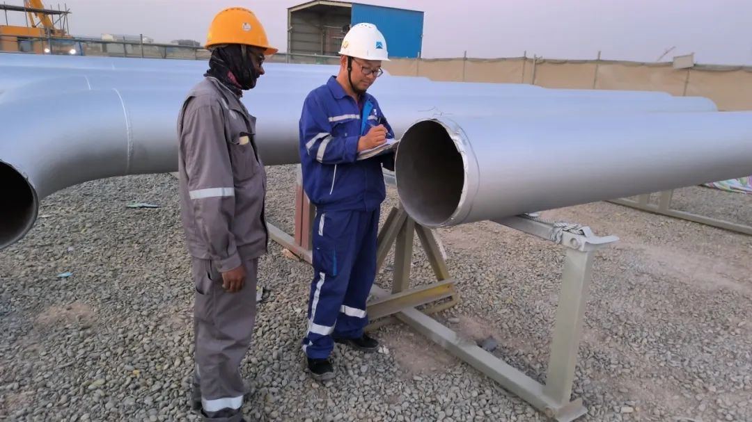 伊拉克九區原(yuán)油中(zhōng)央處理設施項目王培林現場對不鏽鋼管組對報檢