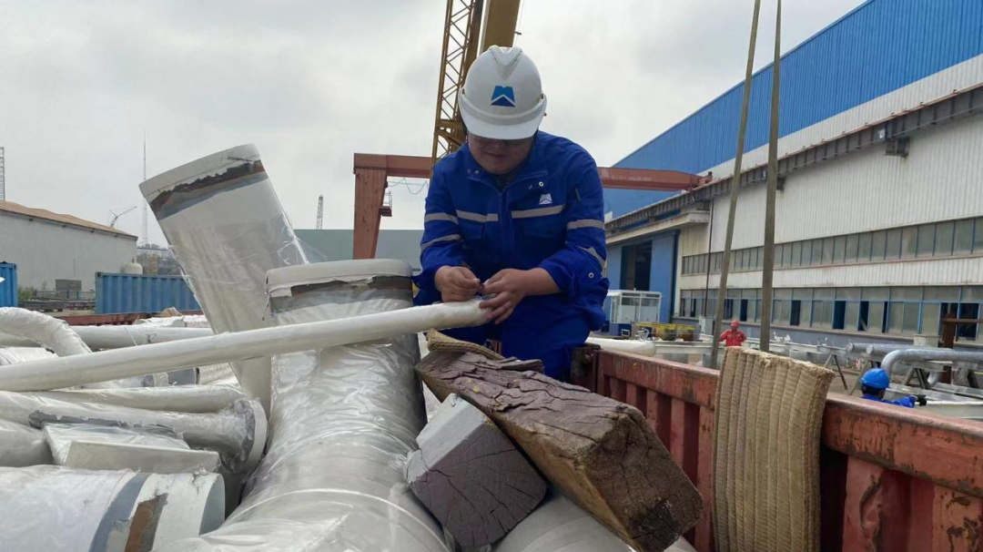 中(zhōng)石油(yóu)管(guǎn)線預製項目裝車過程中趙燁帆、梁坤進行反號(hào)工作,認真核對每根管段的吊牌號碼,保證交接清單(dān)的數據無誤